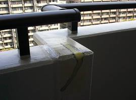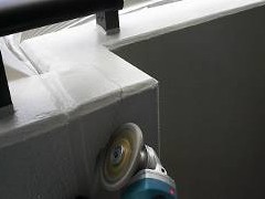 クラックに最低10㎜x10㎜のはつりをいれる。粉塵やゴミを除去する