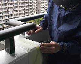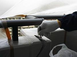 ドライフィックス®UNI(プライマー)を塗布。20分浸透させ、その後余剰分はウエス等でふき取る