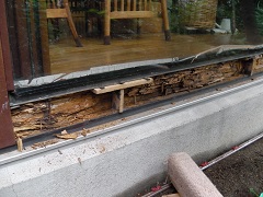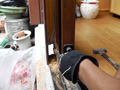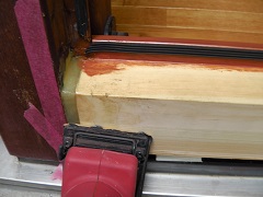 木部の傷んだ部分をすべて切除する。毛羽やゴミも除去。含水率が18%以下であることを確認